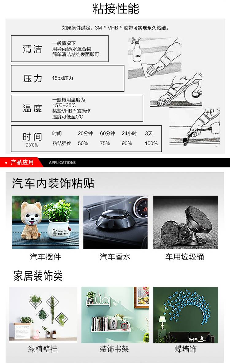 快速易用的永久粘合方法,实现高强度和长期耐久性 几乎看不见的固定方法,让表面保持光洁 可针对透明应用取代机械紧固件(铆接、焊接和螺钉)或液体胶粘剂