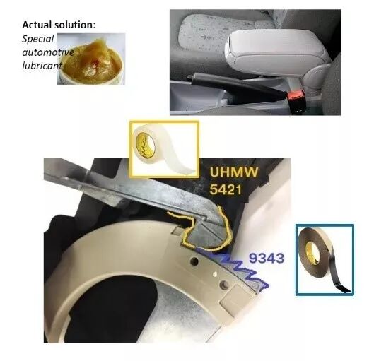 9343 UHMW 降噪胶带应用于定位扶手声音管理,解决冬天低温增滑问题,节约成本。